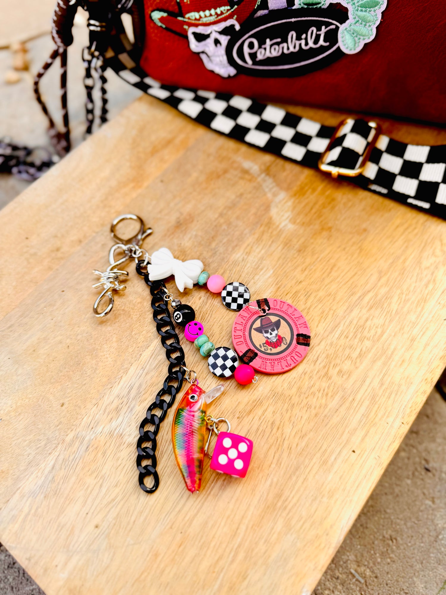 Authentic poker chip, fishing lure,ammo casings, all hand beaded.