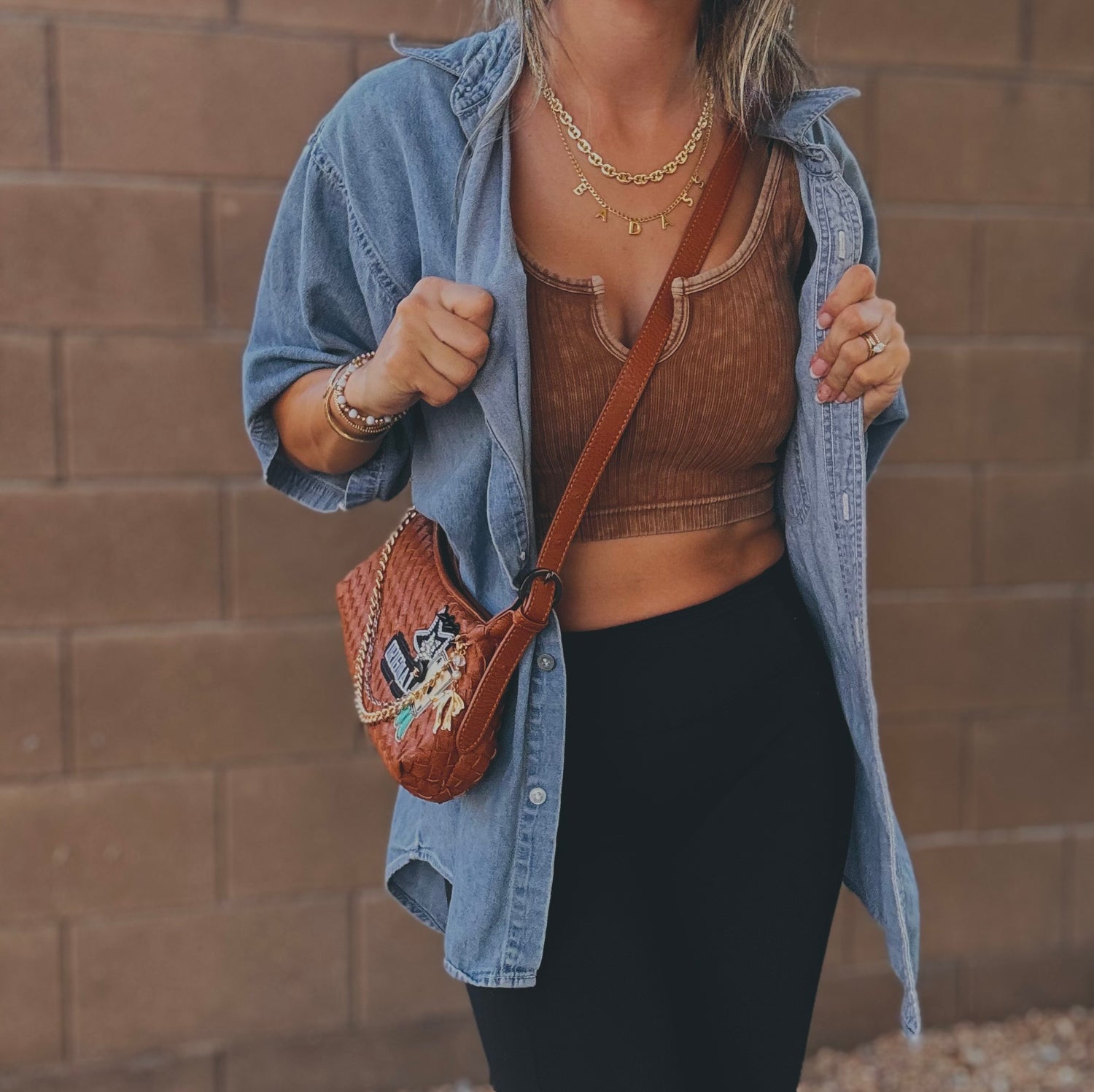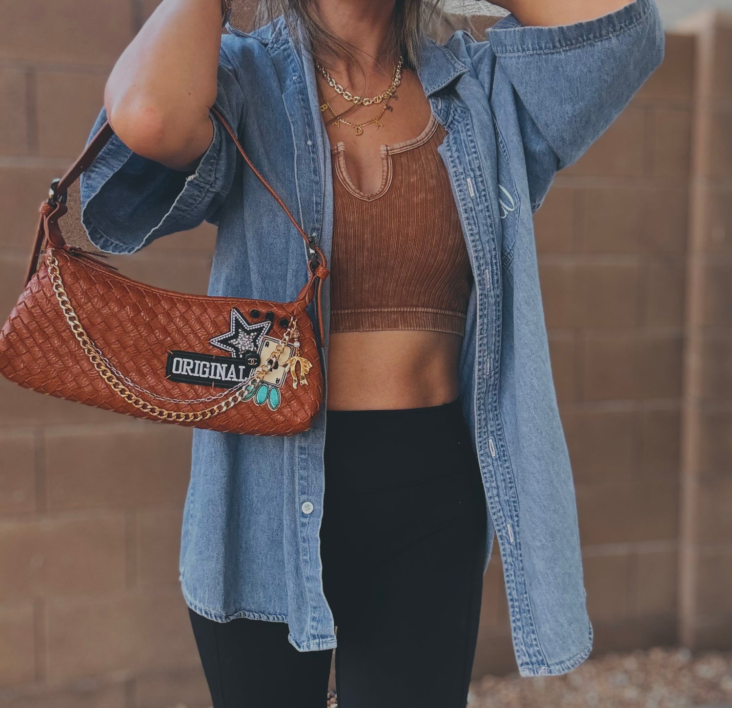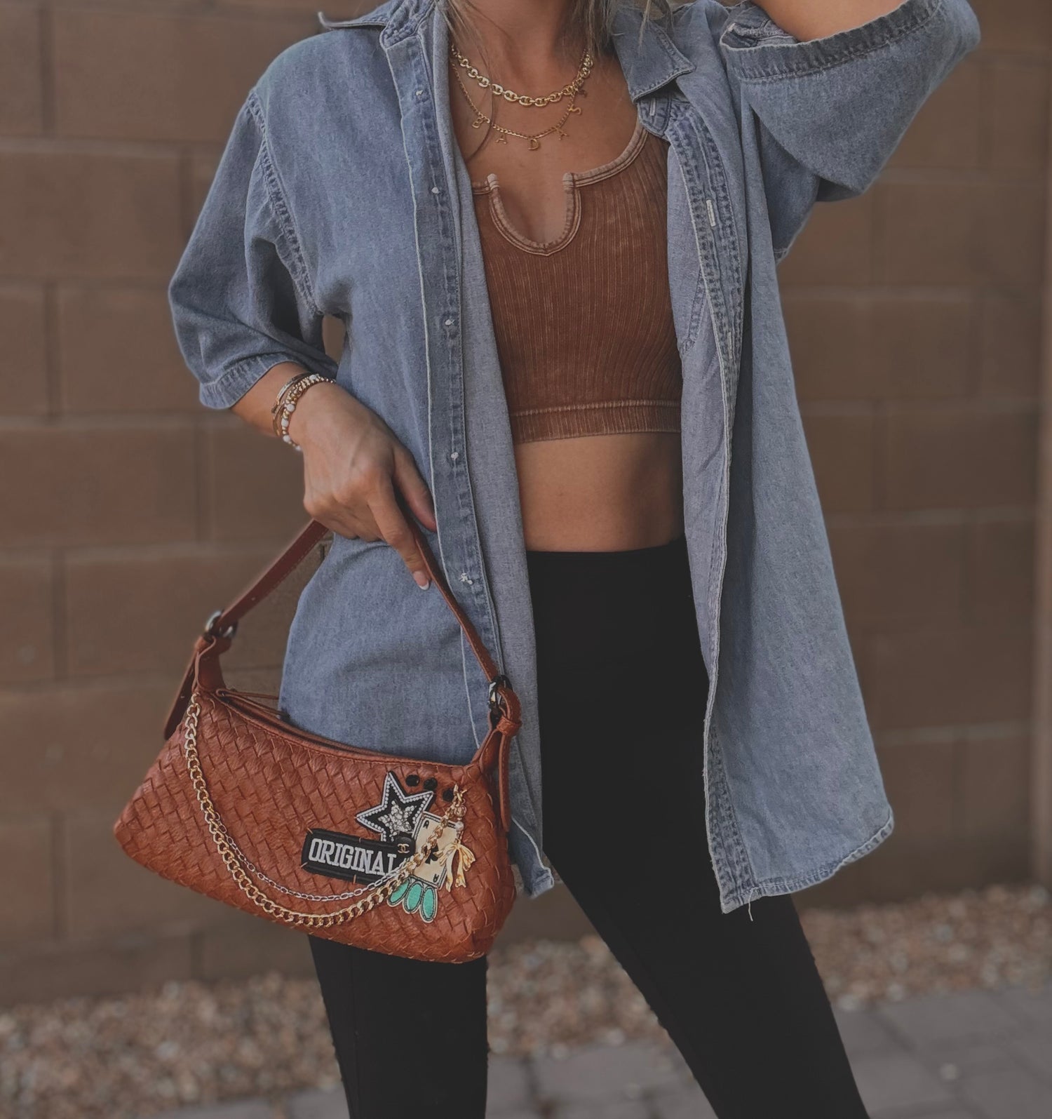 THIS IS A HANDMADE APPLICATION. ALL ITEMS ADDED TO THE BAGS ARE OF A RAW AND NATURAL MATERIAL. ALL CHARMS AND ACCESSORIES ARE FOR LOOK PURPOSES NOT USE AND SHOULD BE USED AND WOEN WITH EXTRA CARE! PLEASE SEE CARE CARDS AND FOLLOW CARE AND USE INSTRUCTIONS