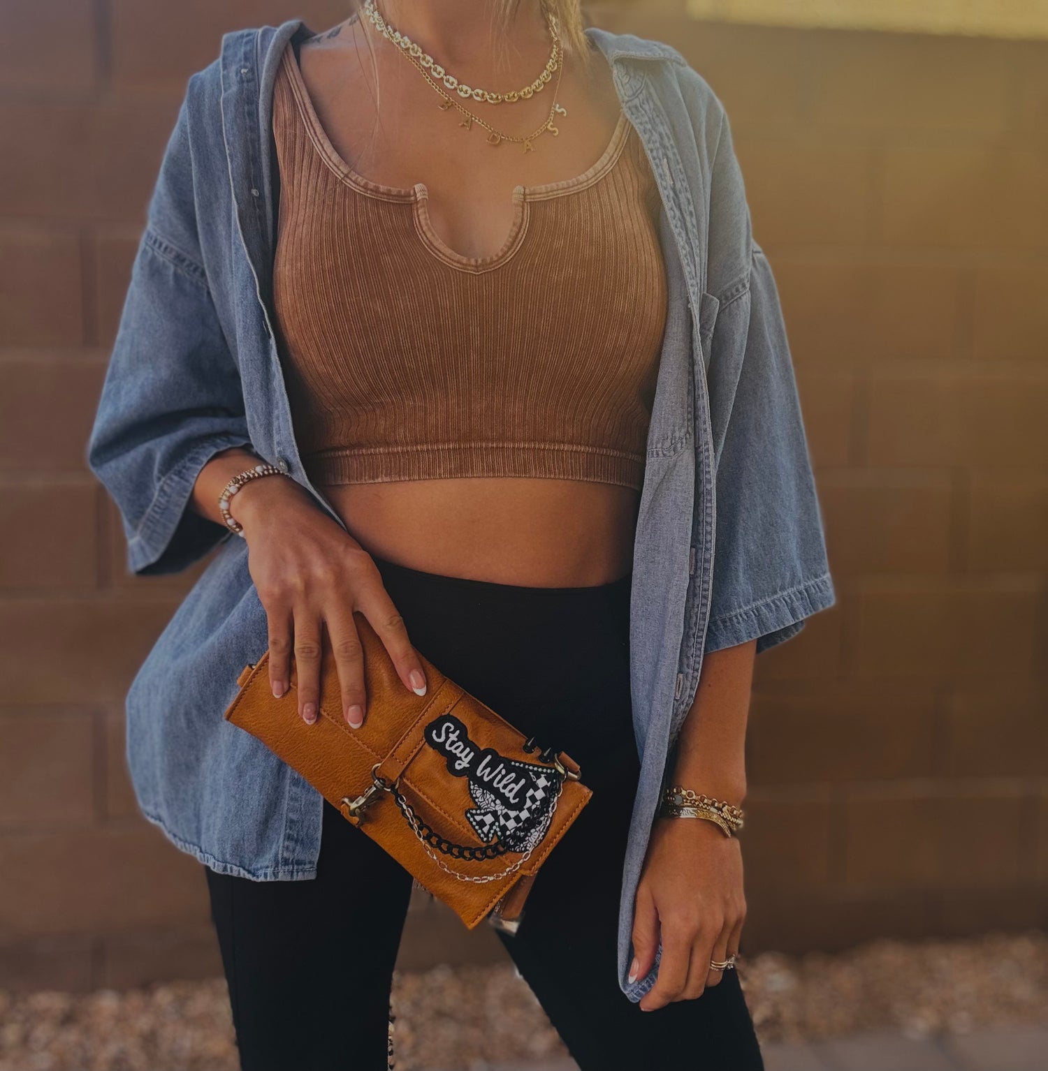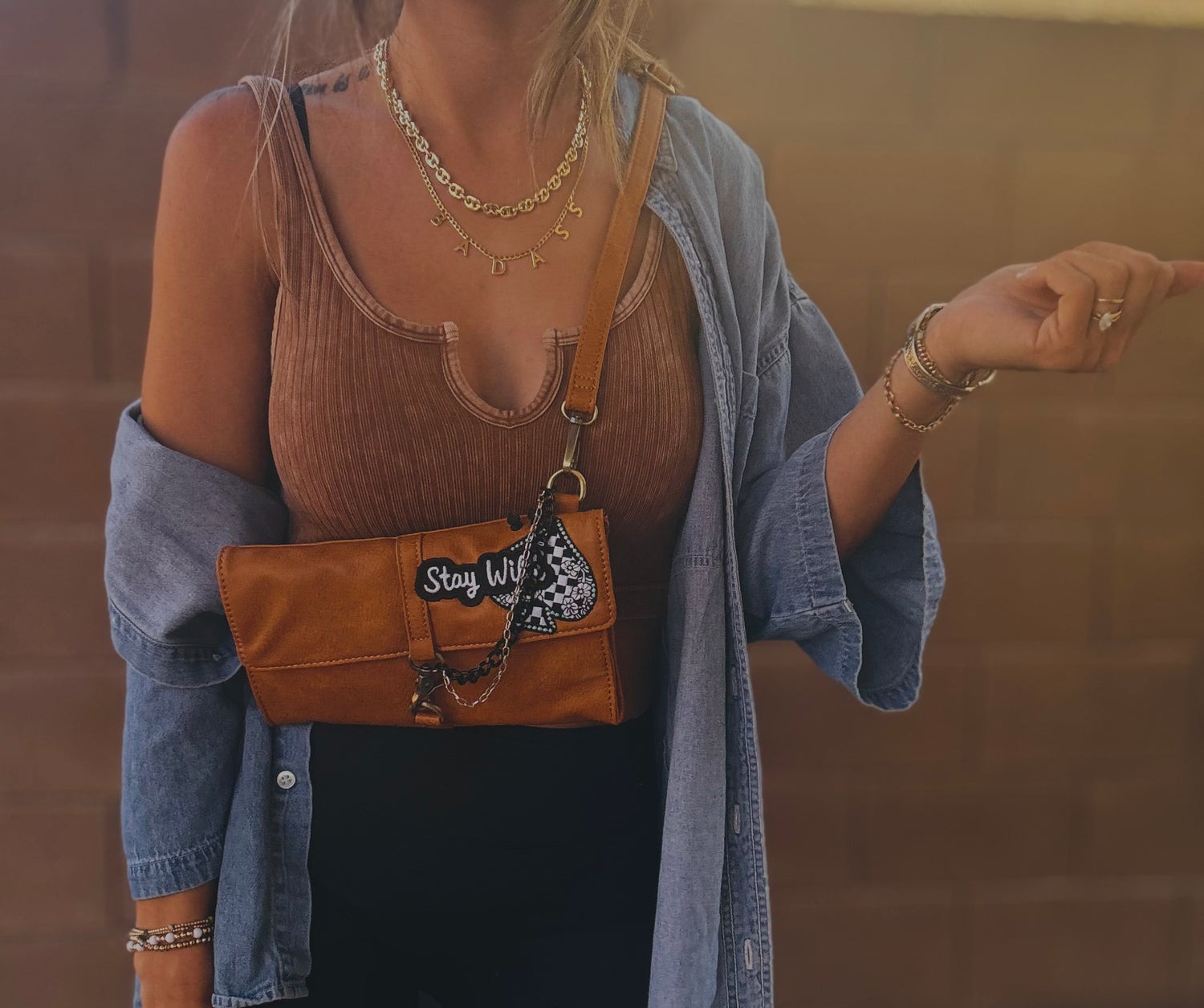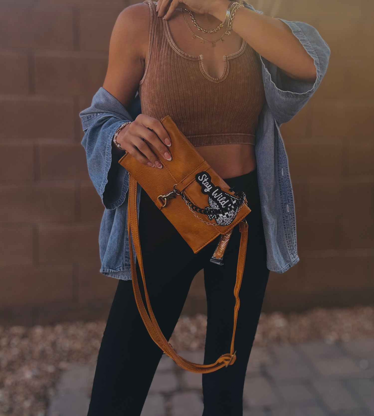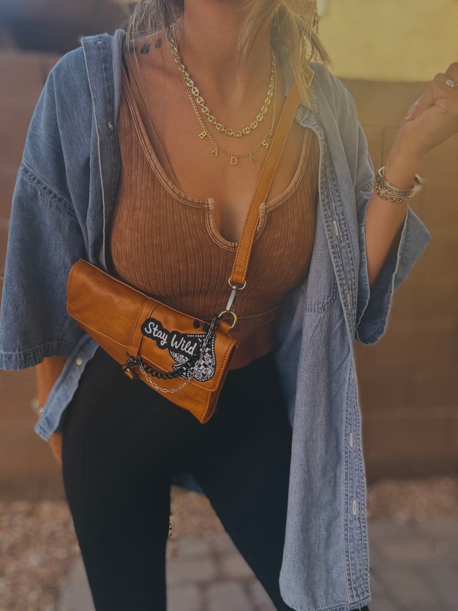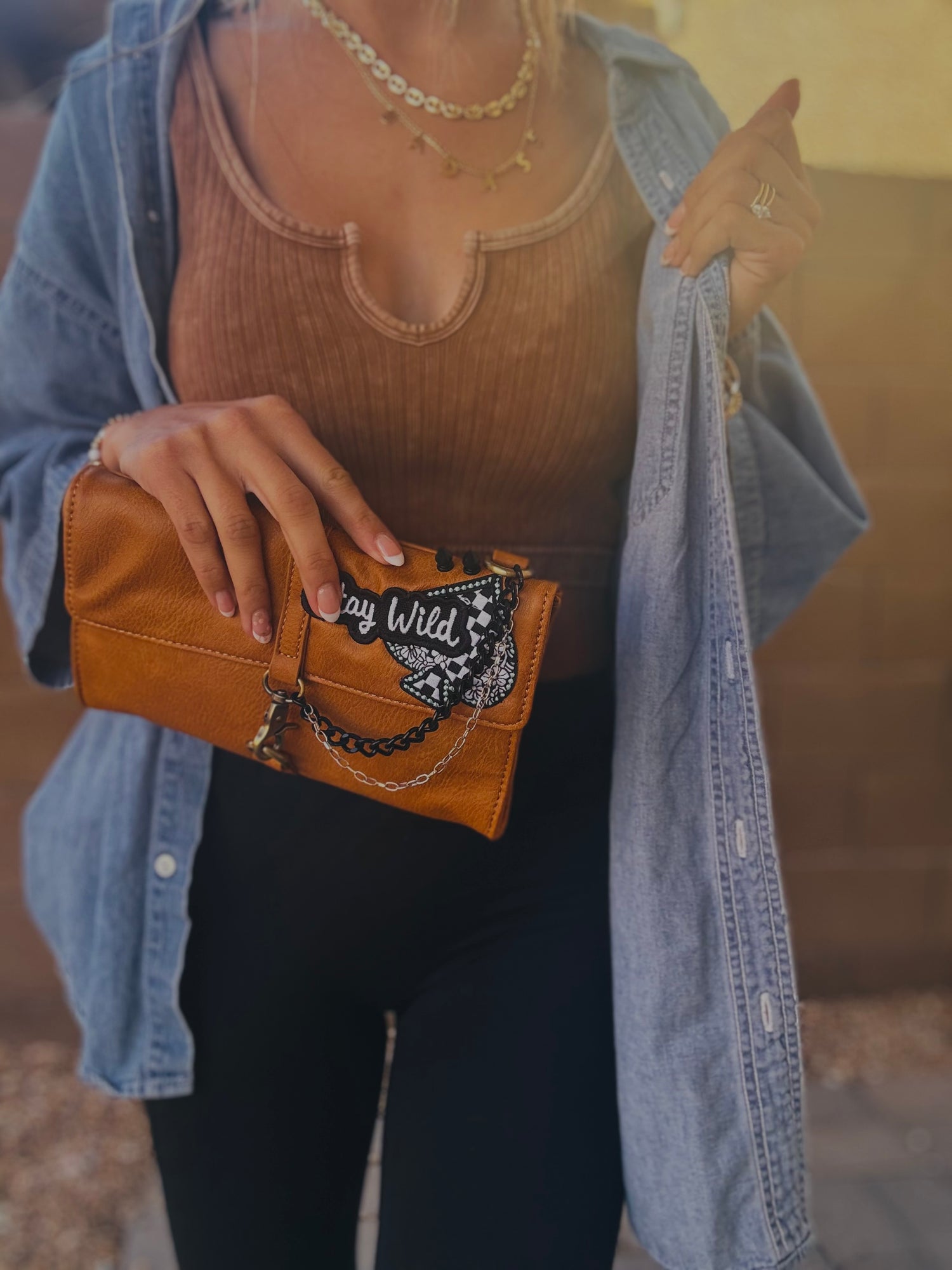 THIS IS A HANDMADE APPLICATION. ALL ITEMS ADDED TO THE BAGS ARE OF A RAW AND NATURAL MATERIAL. ALL CHARMS AND ACCESSORIES ARE FOR LOOK PURPOSES NOT USE AND SHOULD BE USED AND WOEN WITH EXTRA CARE! PLEASE SEE CARE CARDS AND FOLLOW CARE AND USE INSTRUCTIONS