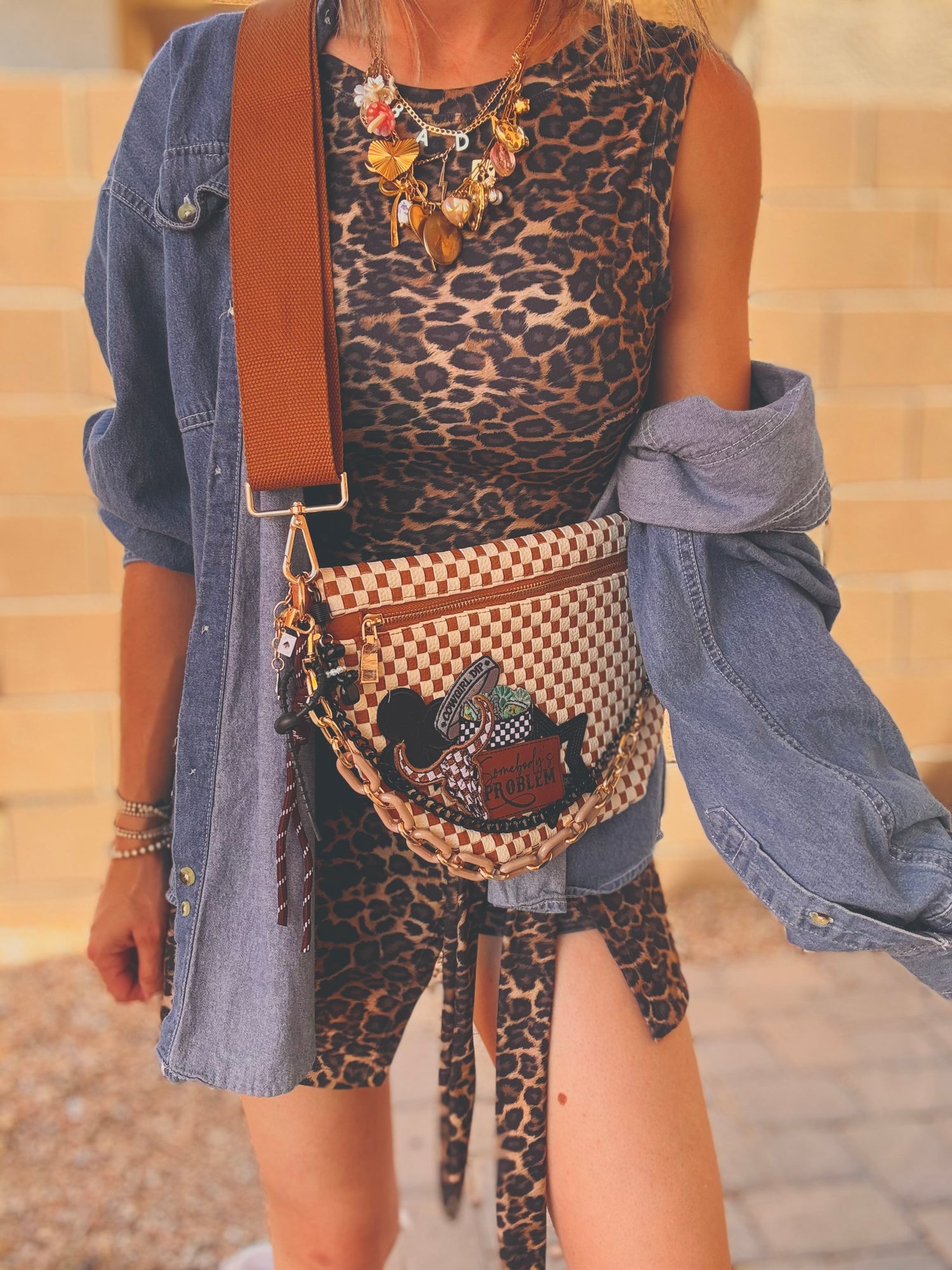 This is The SEDONA Crossbody Purse. Made with High quality Vegan Woven Leather. All exterior designs, applications and accessories have been Handmade and created by CM CO.
