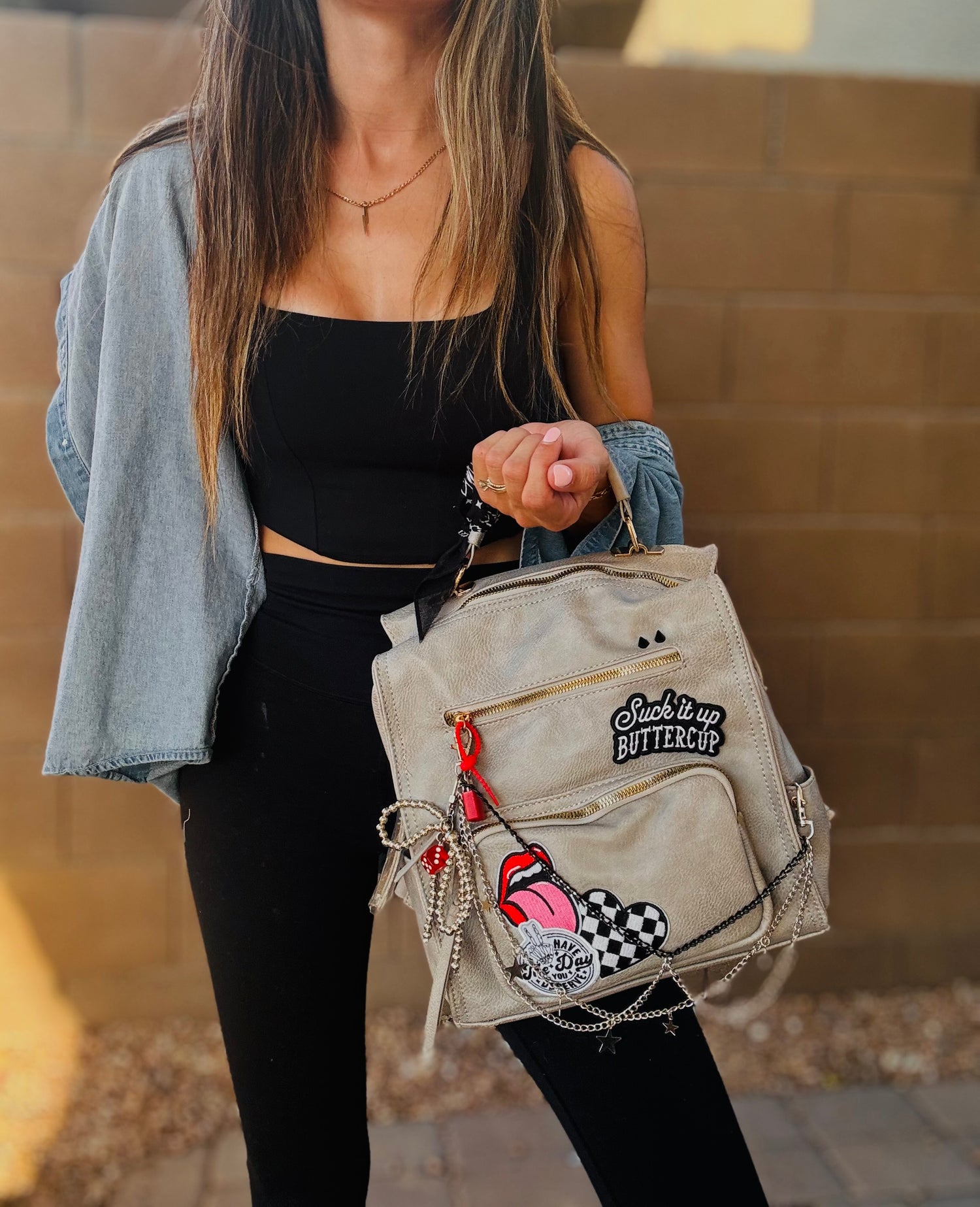 HA- day you deserve suck it up buttercup -stone grey *PAYSON BAG**