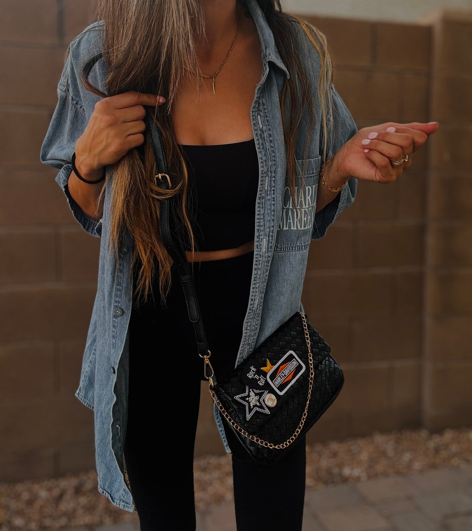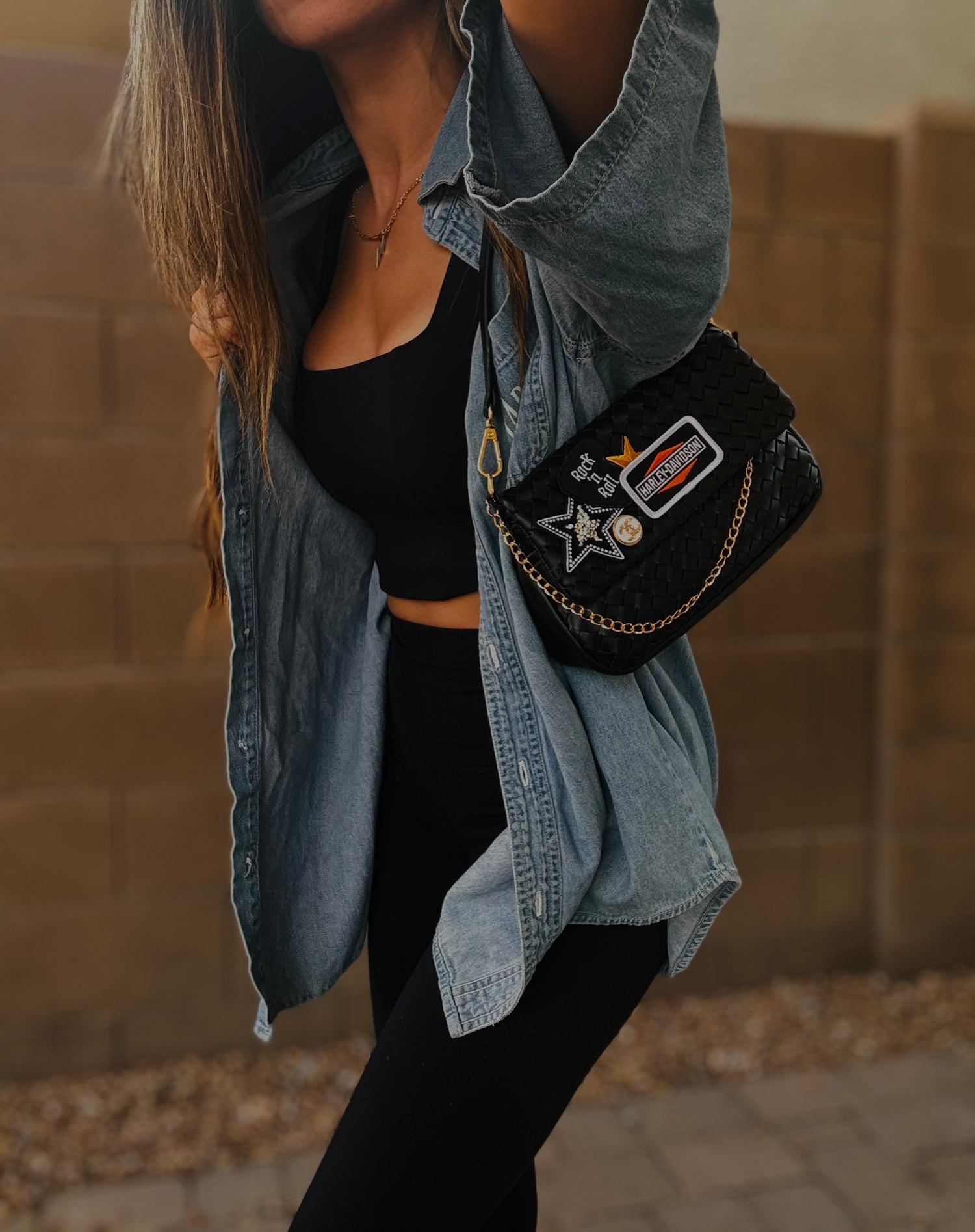THIS IS A HANDMADE APPLICATION. ALL ITEMS ADDED TO THE BAGS ARE OF A RAW AND NATURAL MATERIAL. ALL ACCESSORIES AND CHARMS SHOULD BE WORN WITH CARE AS THEY ARE FOR DECOR PURPOSES ONLY PLEASE SEE CARE CARDS AND FOLLOW CARE AND USE INSTRUCTIONS