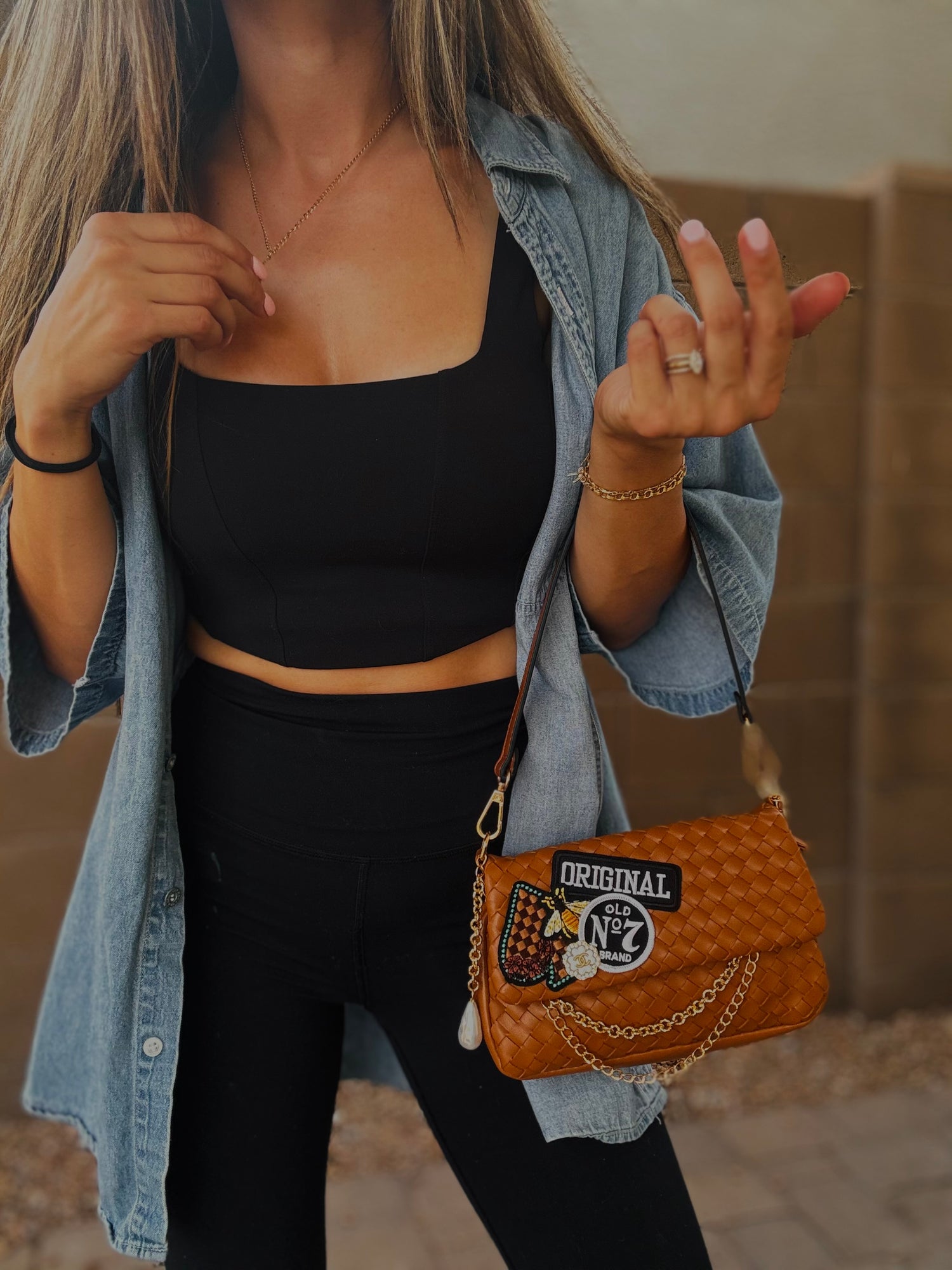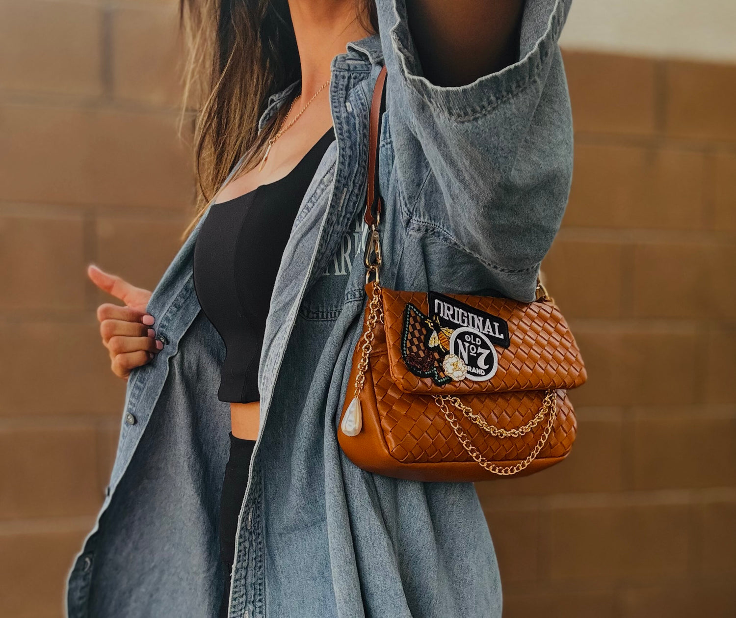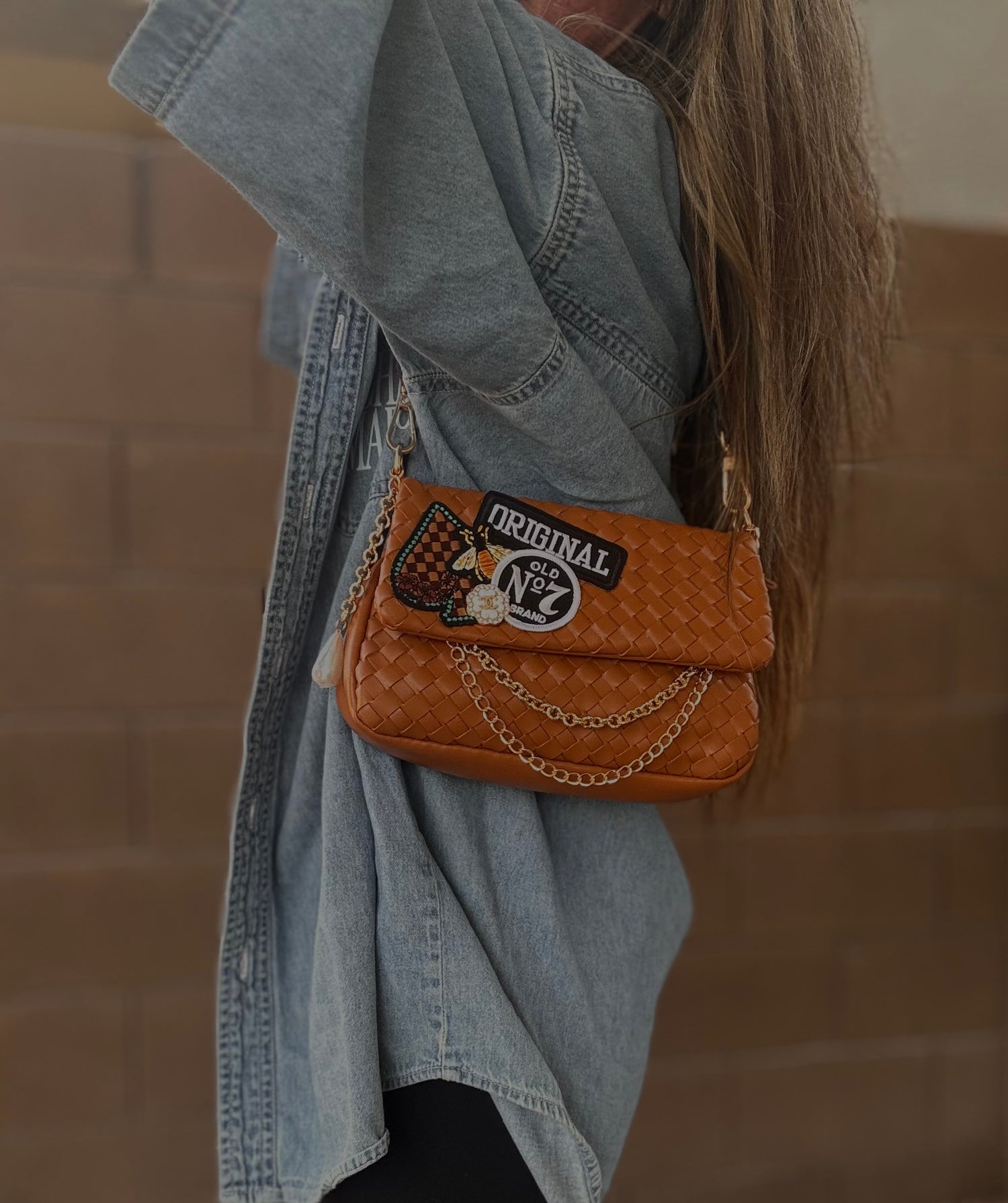 This is The Scottsdale Purse. Made with High quality Vegan Woven Leather. All exterior designs, applications and accessories have been Handmade and created by CM CO.