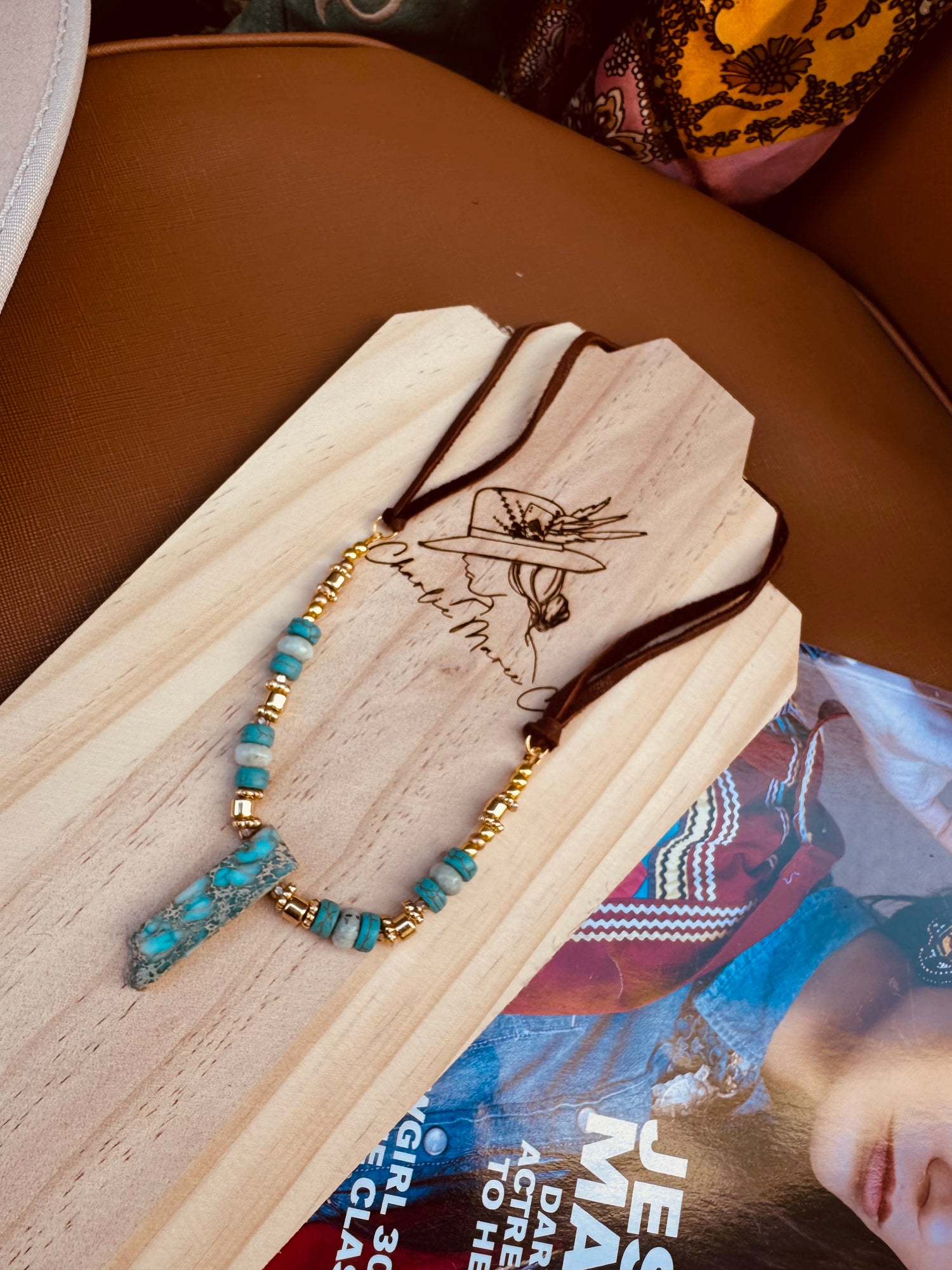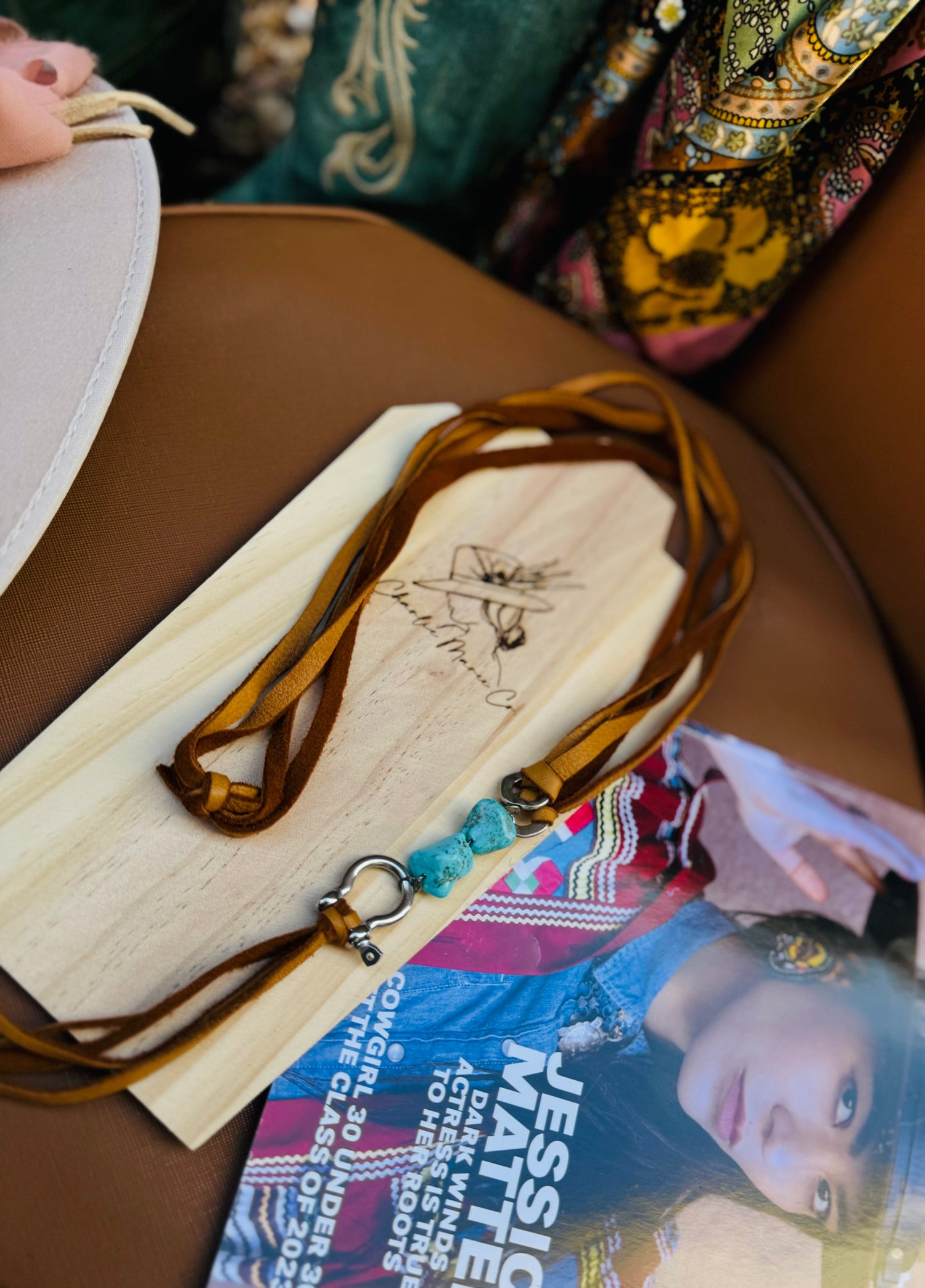 Genuine handmade pendant Necklace Each one is One Of A Kind. Natural beaded and Real locally sourced Elk Hide. Raw cut.