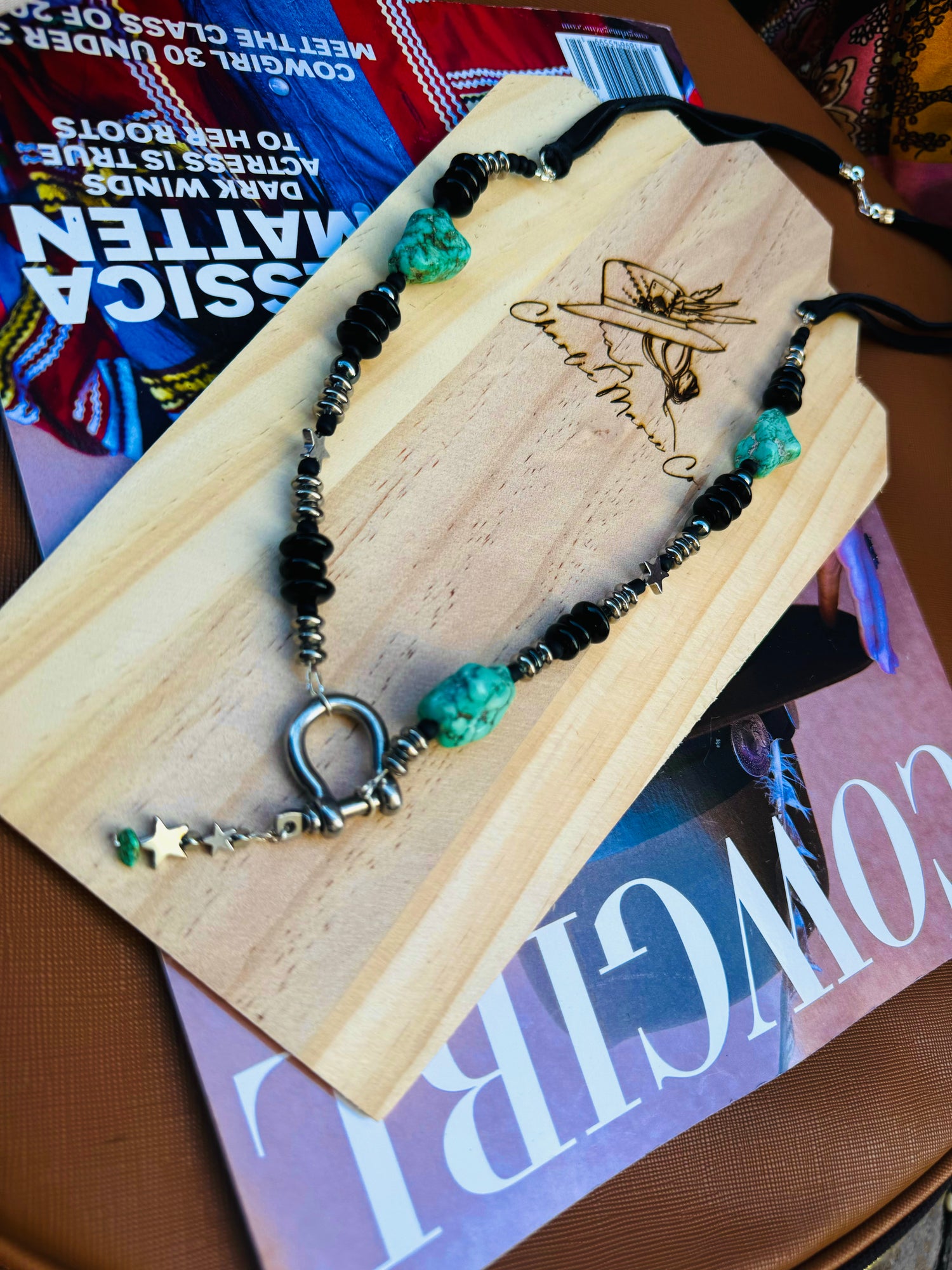 LB-Fallen Star Turquoise Elk Hide Necklace