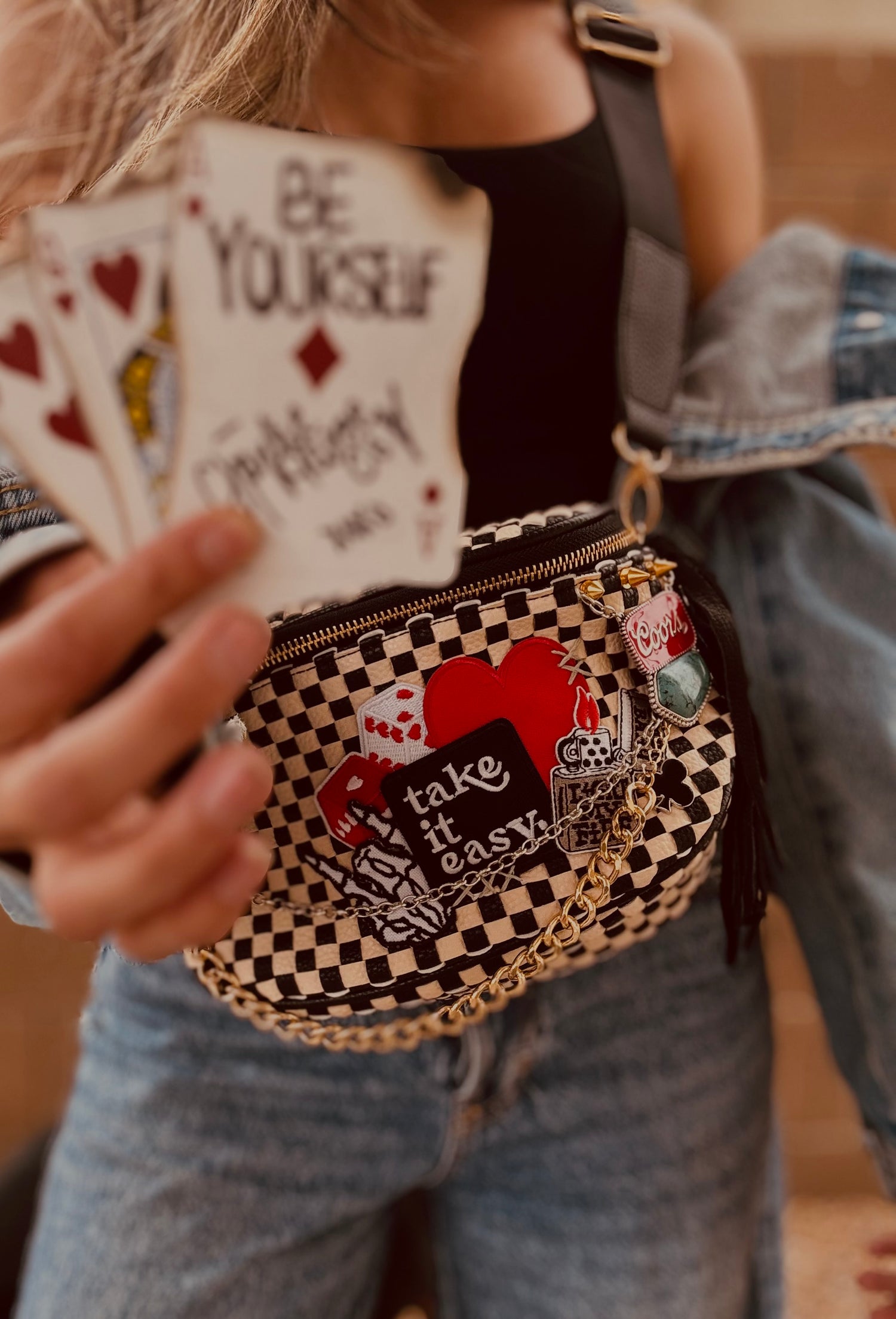 THIS IS A HANDMADE APPLICATION. ALL ITEMS ADDED TO THE BAGS ARE OF A RAW AND NATURAL MATERIAL. PLEASE SEE CARE CARDS AND FOLLOW CARE AND USE INSTRUCTIONS