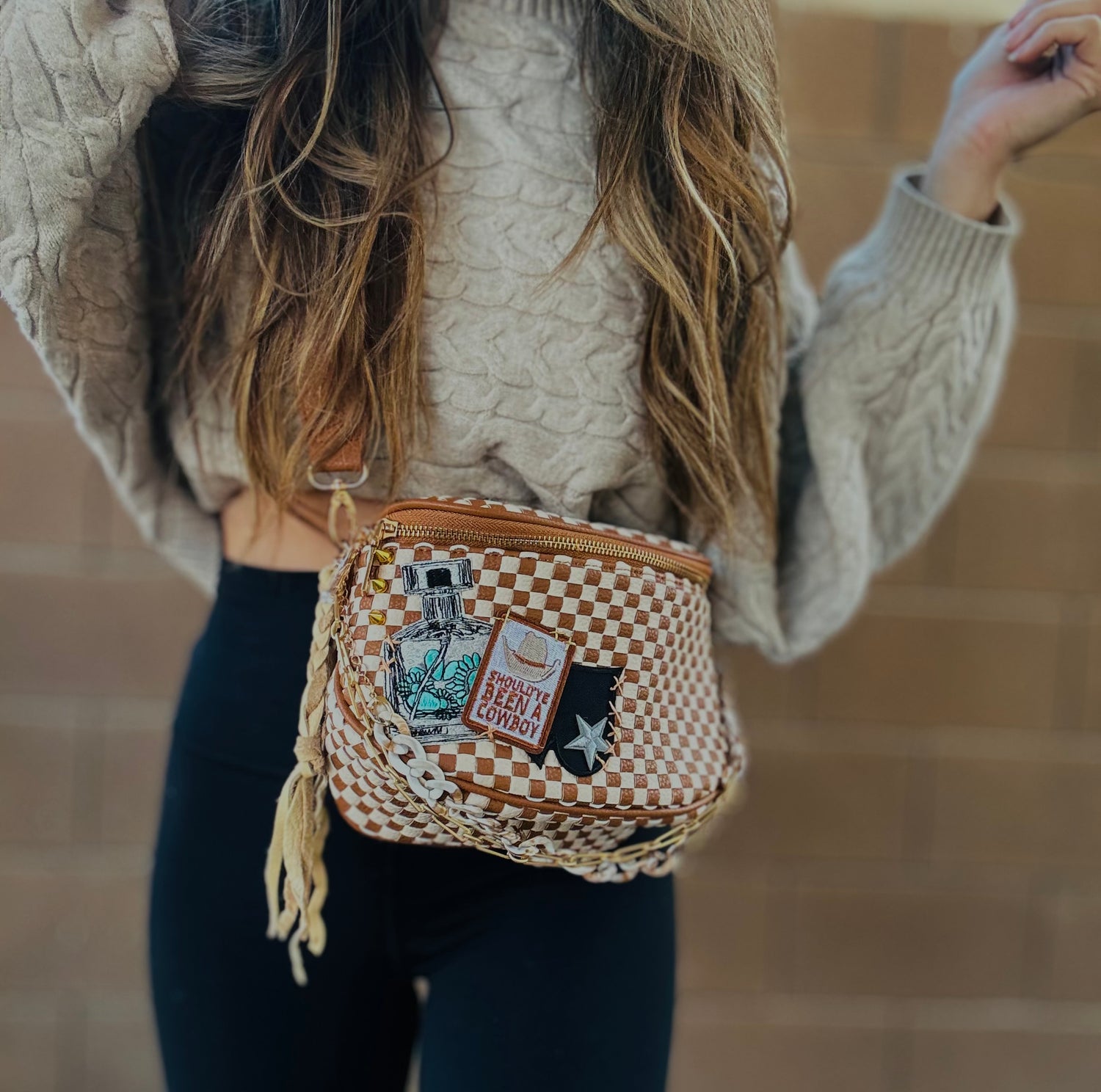 This is The PHOENIX Crossbody Purse. Made with Hugh quality Vegan Woven Leather. All exterior designs, applications and accessories have been Handmade and created by CM CO.