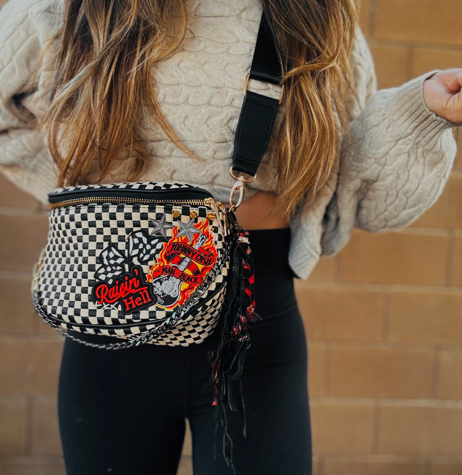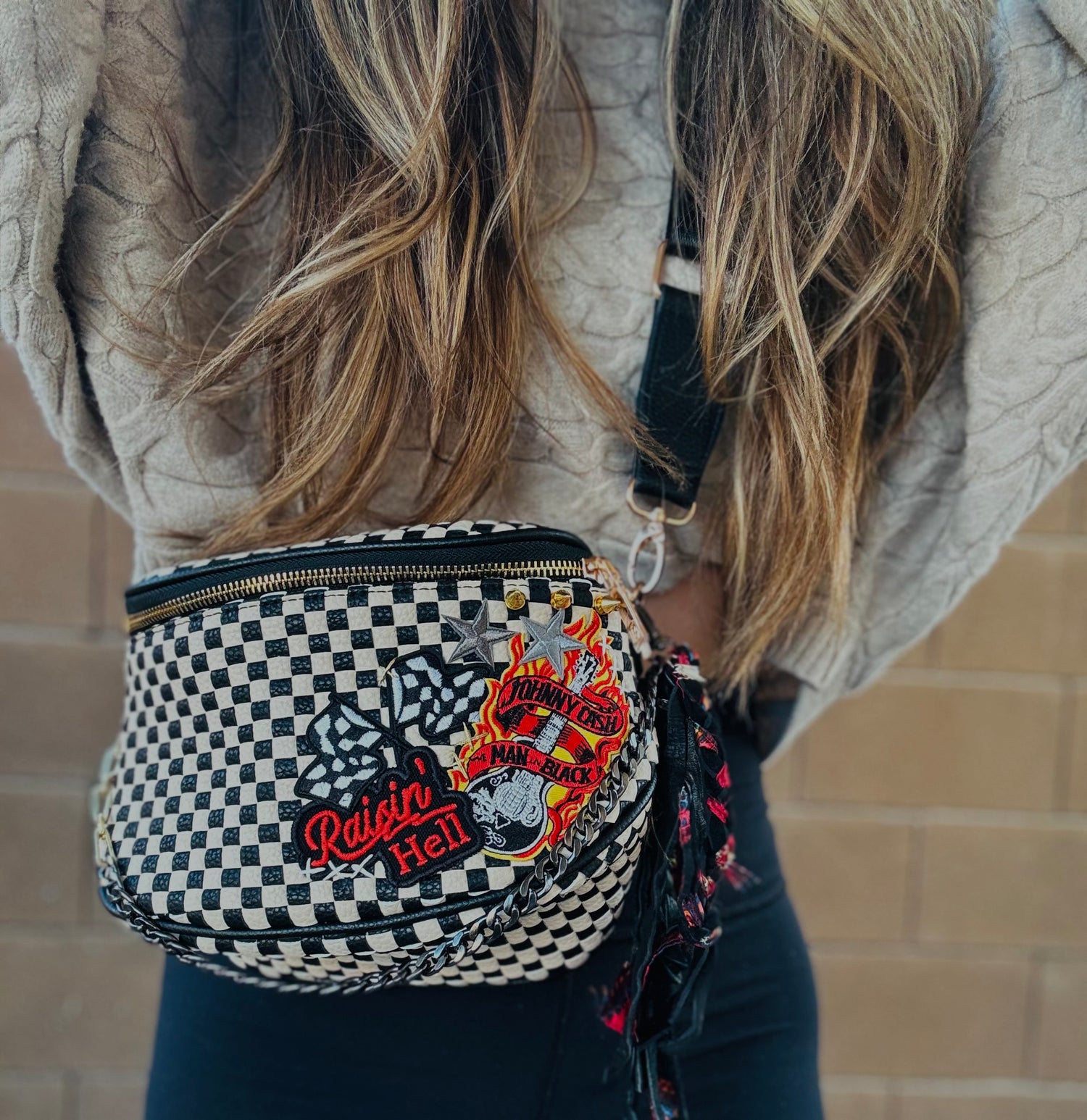 This is The PHOENIX Crossbody Purse. Made with Hugh quality Vegan Woven Leather. All exterior designs, applications and accessories have been Handmade and created by CM CO.
