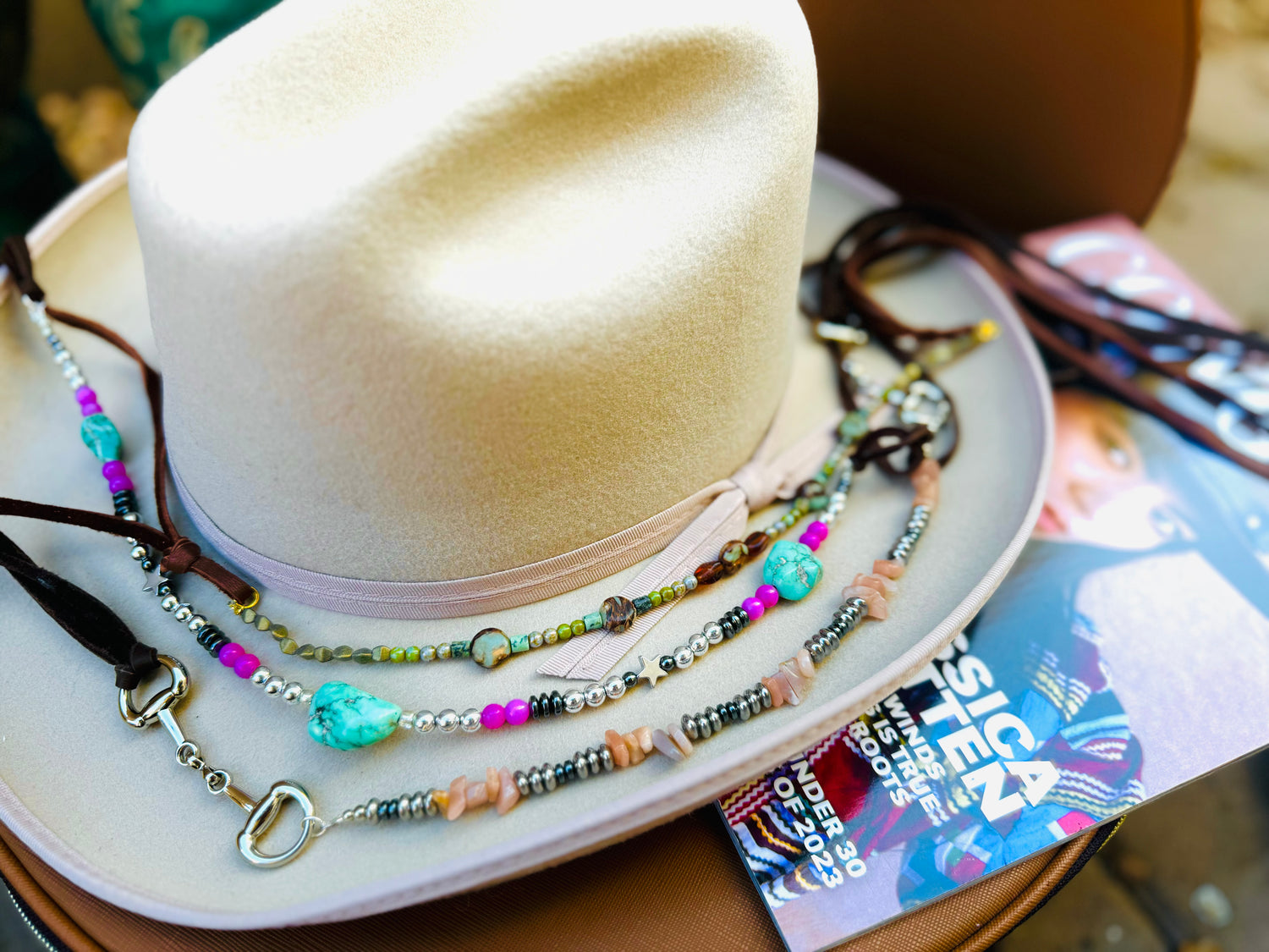 Genuine Handmade Locally sourced Elk hide Hat bands. Beaded and designed by CM Co.