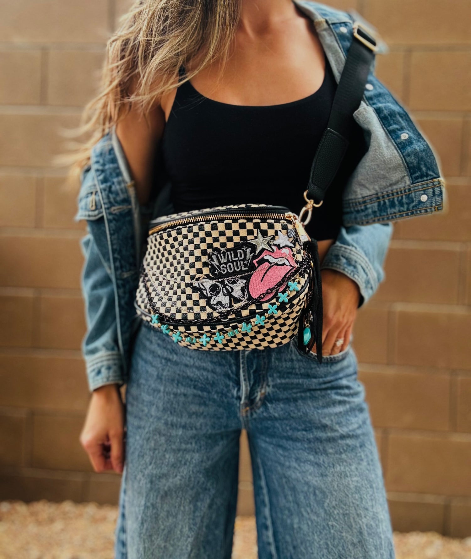 This is The PHOENIX Crossbody Purse. Made with Hugh quality Vegan Woven Leather. All exterior designs, applications and accessories have been Handmade and created by CM CO.