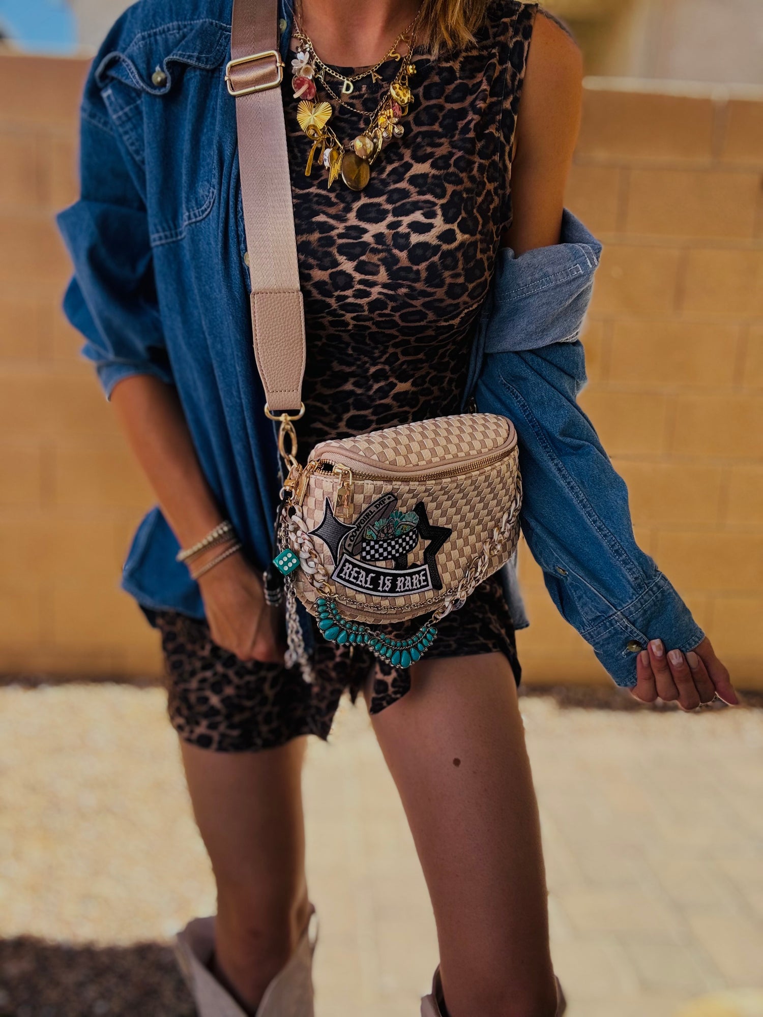 This is The PHOENIX Crossbody Purse. Made with High quality Vegan Woven Leather. All exterior designs, applications and accessories have been Handmade and created by CM CO.