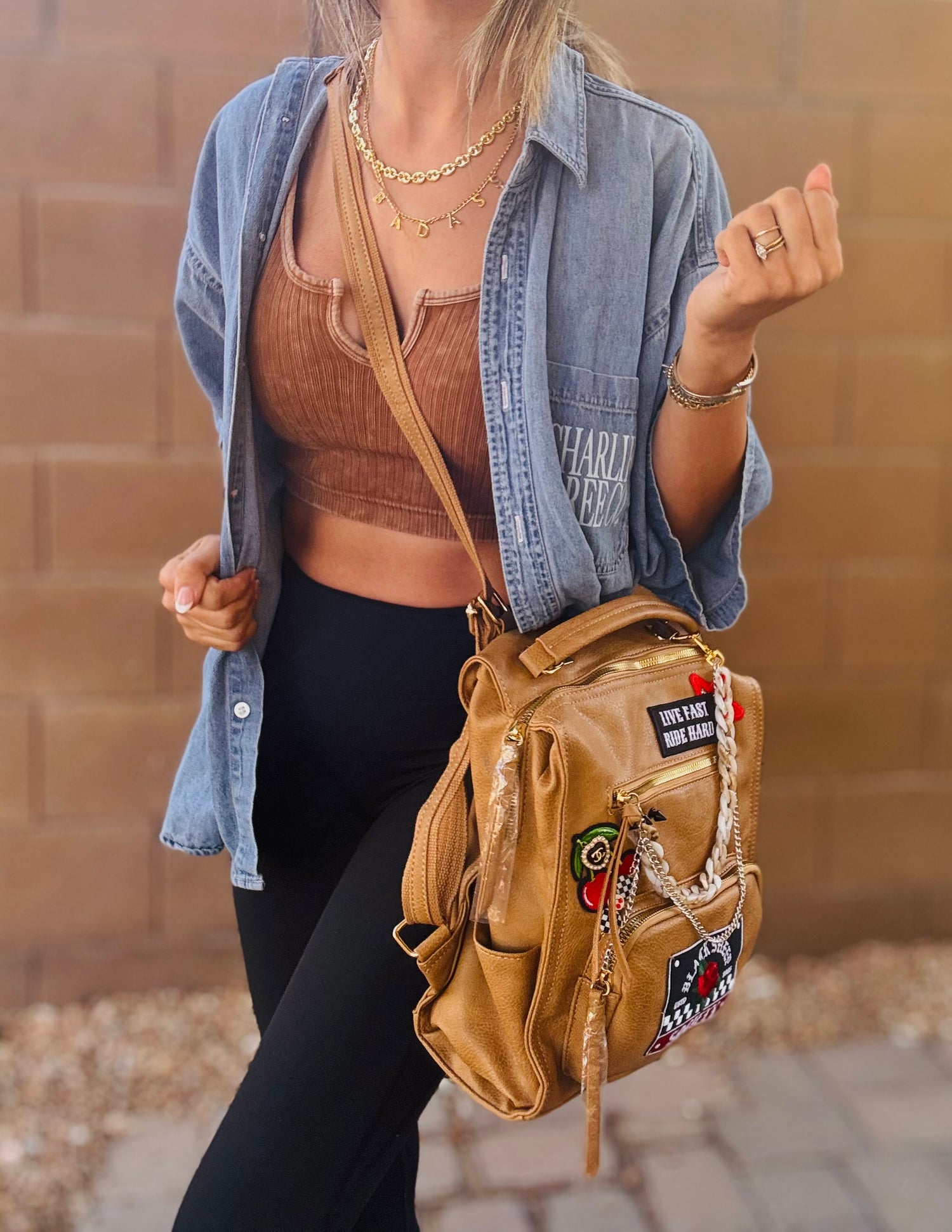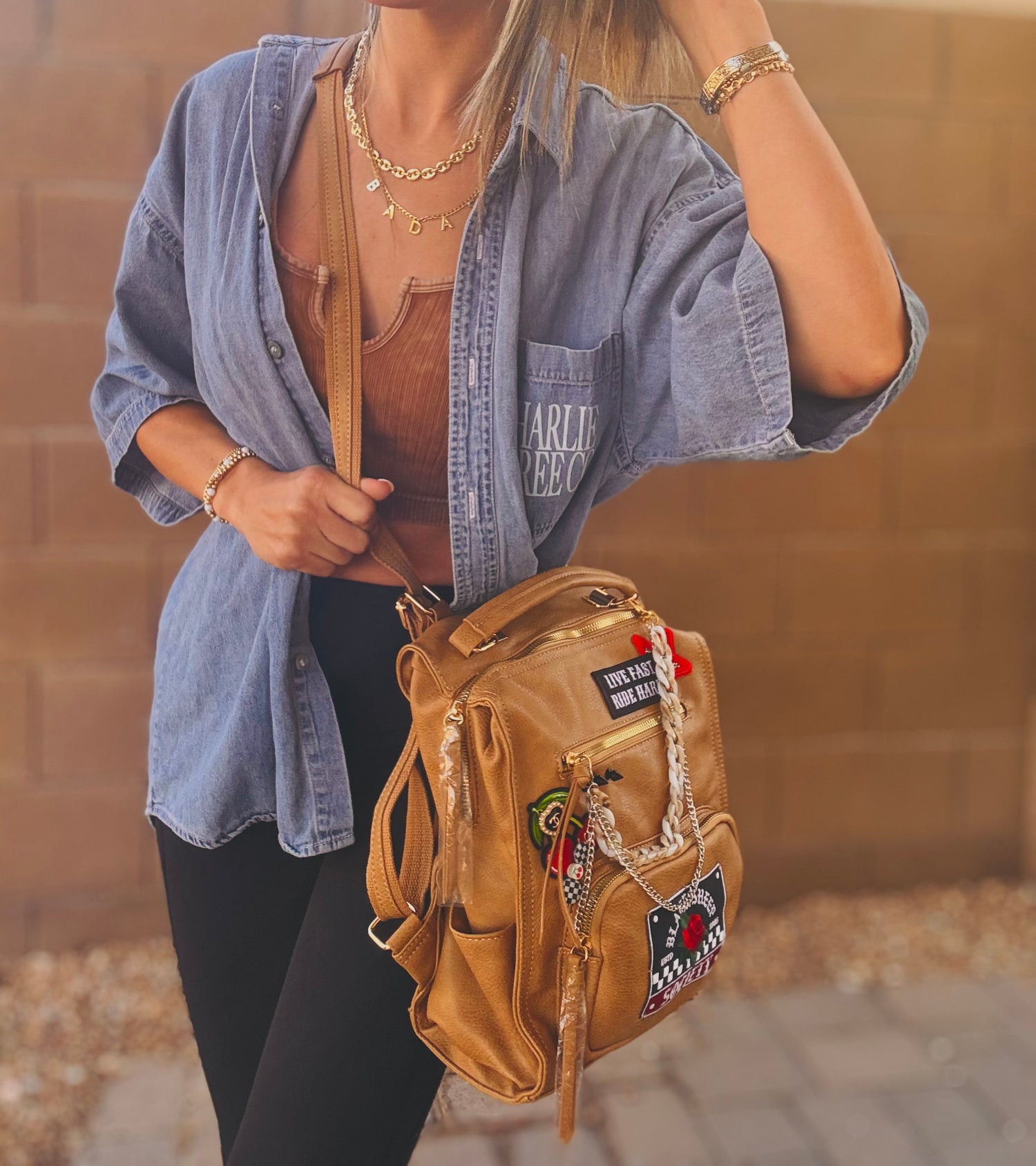 Made with High quality Vegan Leather. All exterior designs, applications and accessories have been Handmade and created by CM CO.