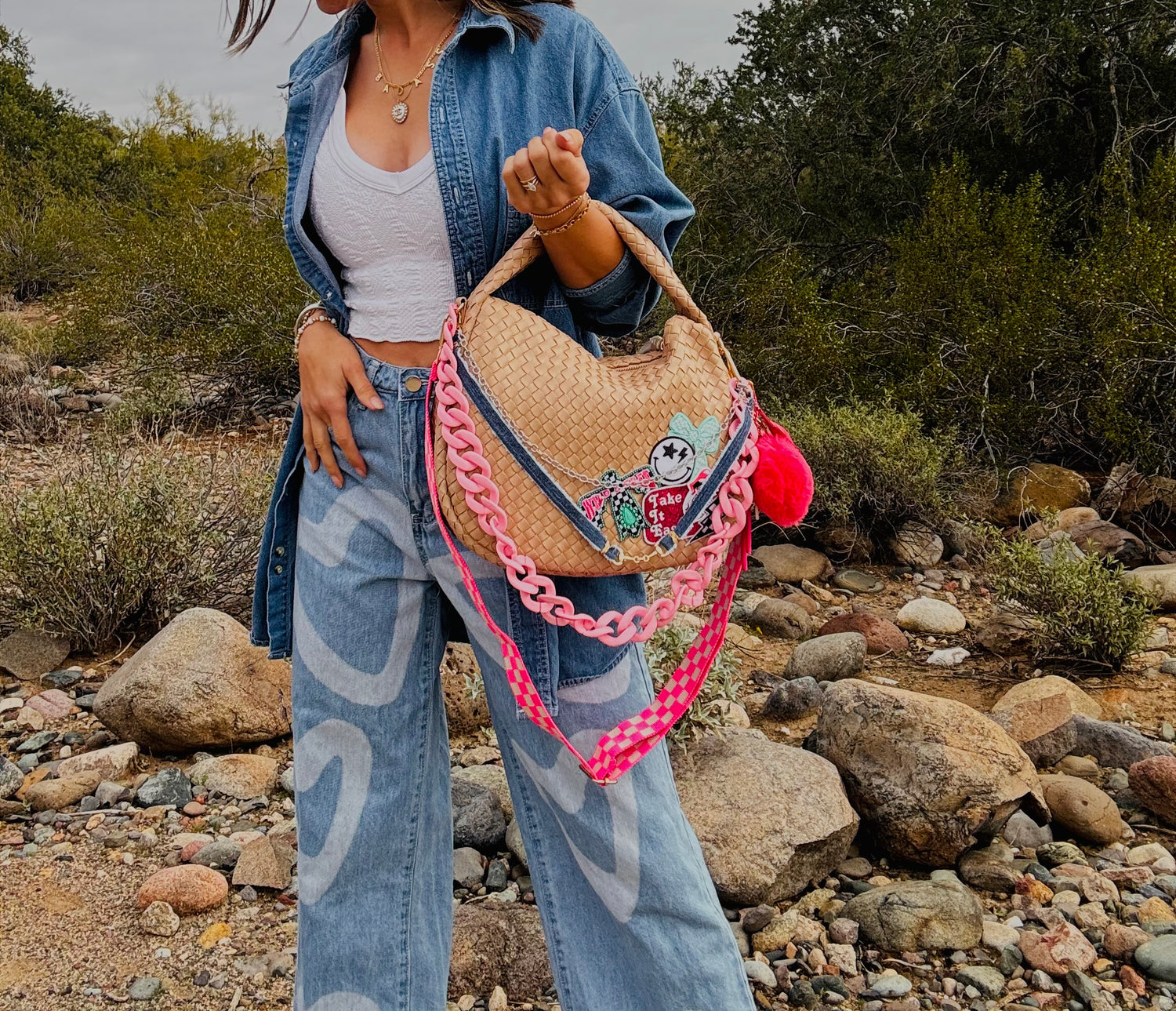 NY-take it easy Pink Bombshell+ denim snaffle bit and checkered *CHANDLER BAG**