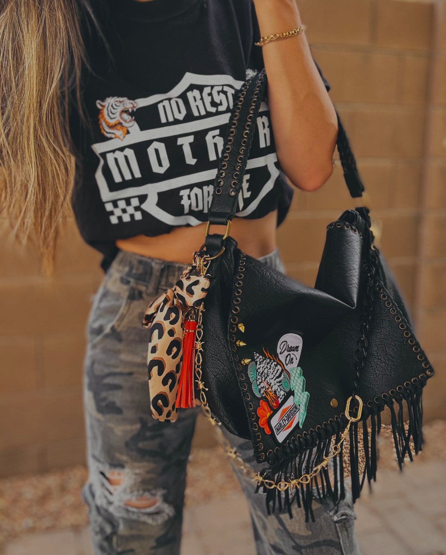 OO-BIKE BABE DREAM ON - BLACK FRINGE crossbody strap included