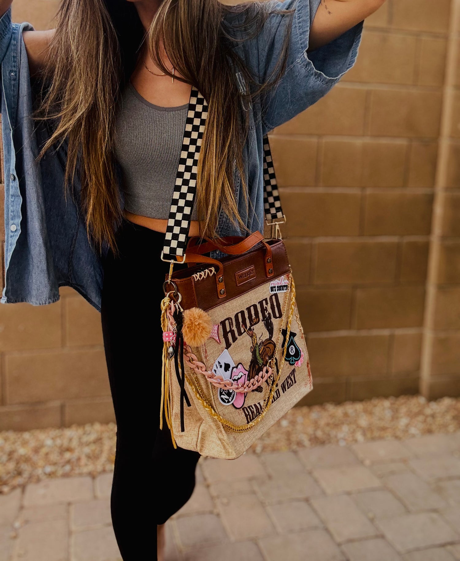 COMES WITH A Checkered CROSSBODY STRAP ADD ON plus original leather crossbody strap.