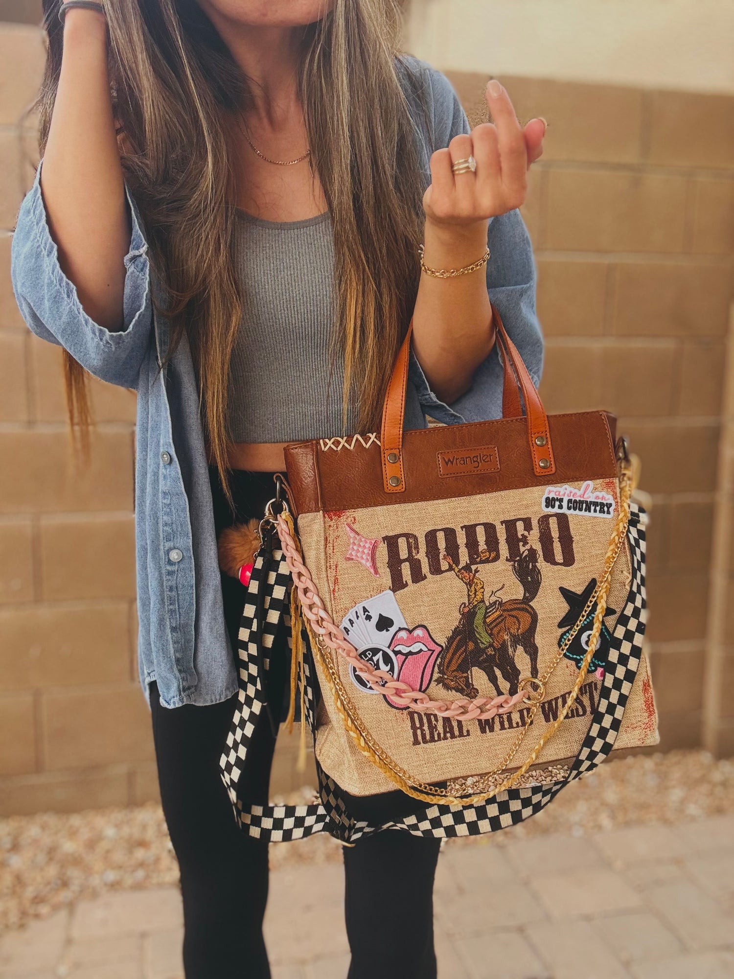 OO-Wrangler Rodeo Babe checkered pink - Repurposed Wrangler Crossbody