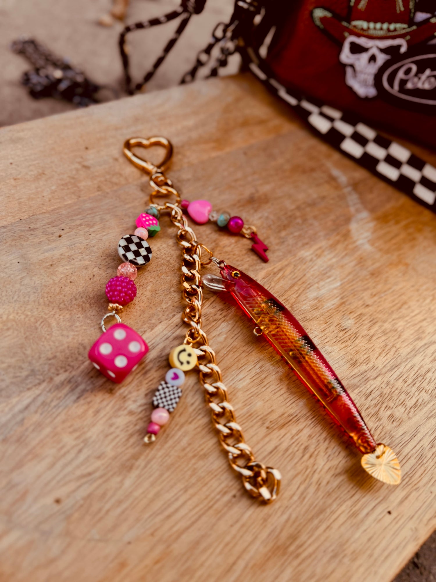 Authentic poker chip, fishing lure,ammo casings, guitar picks all hand beaded.