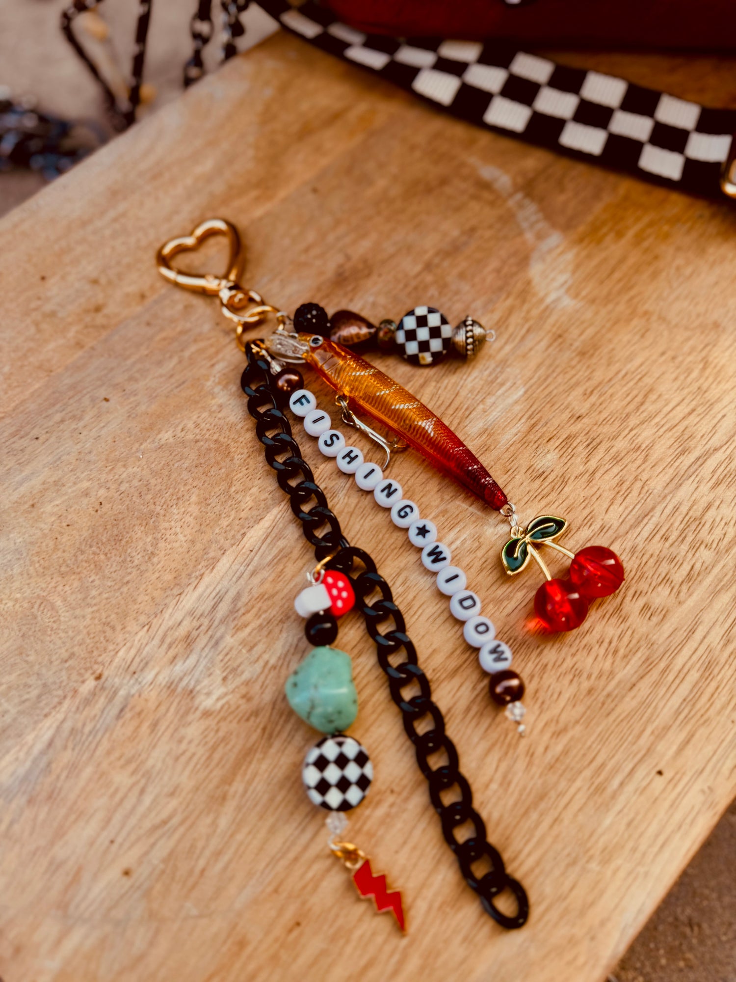 Authentic poker chip, fishing lure,ammo casings, guitar picks all hand beaded.