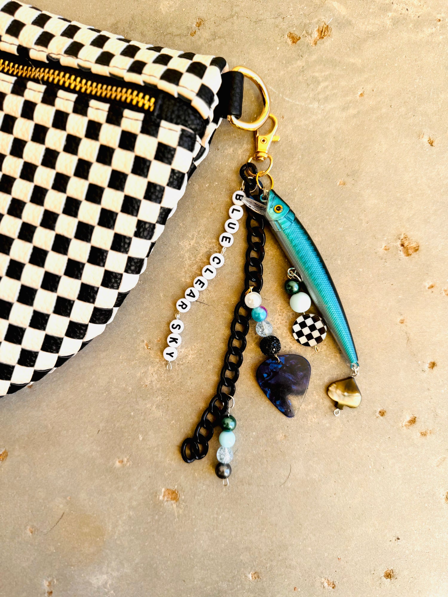 Authentic poker chip, fishing lure,ammo casings, guitar picks all hand beaded.