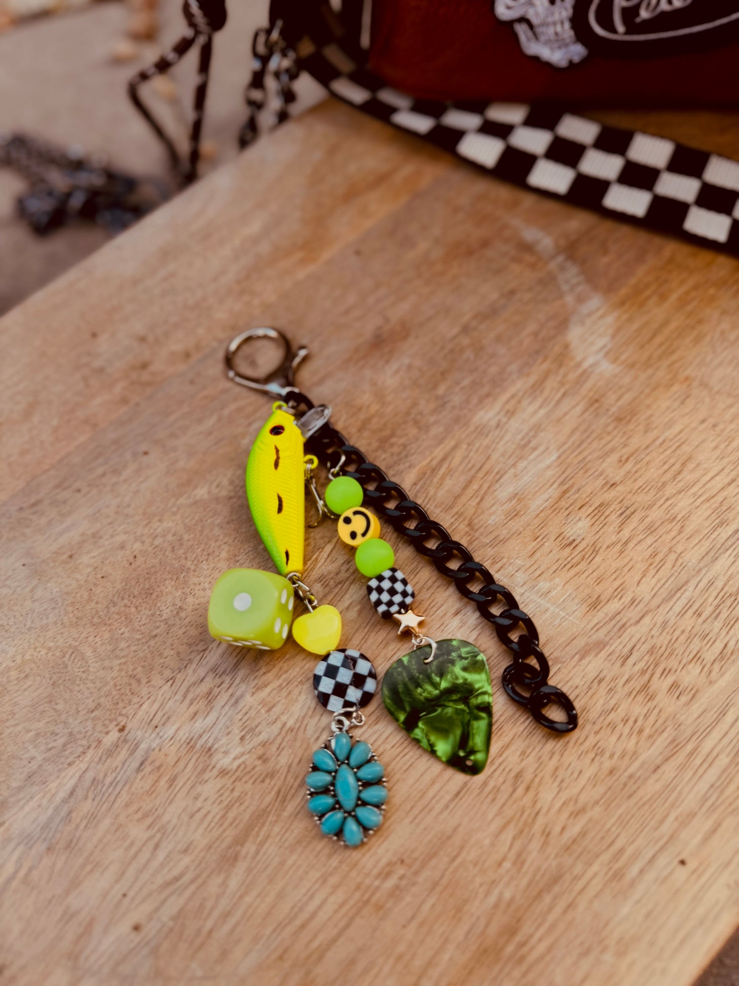 Authentic poker chip, fishing lure,ammo casings, guitar picks all hand beaded.