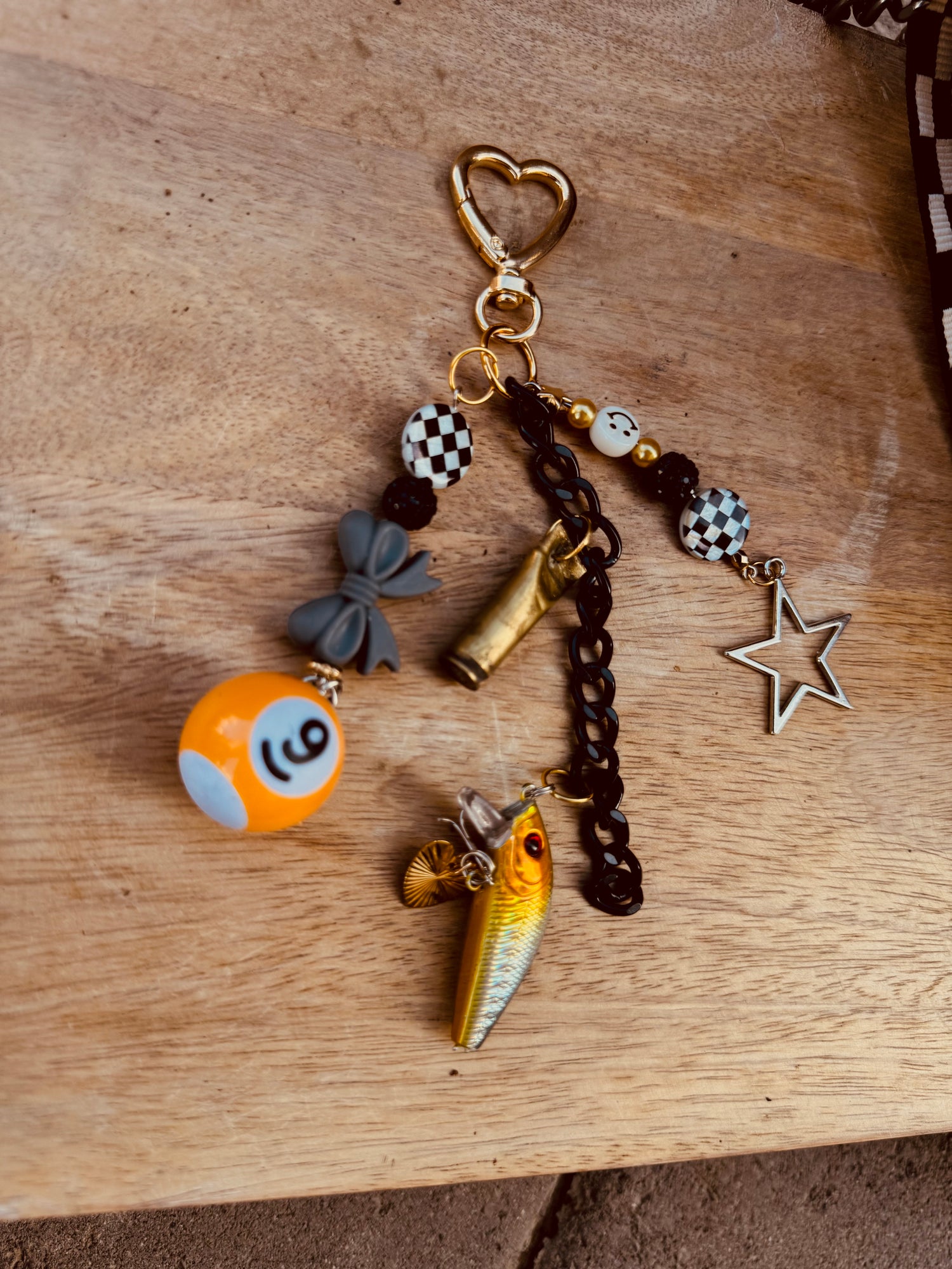 Authentic poker chip, fishing lure,ammo casings, guitar picks all hand beaded.