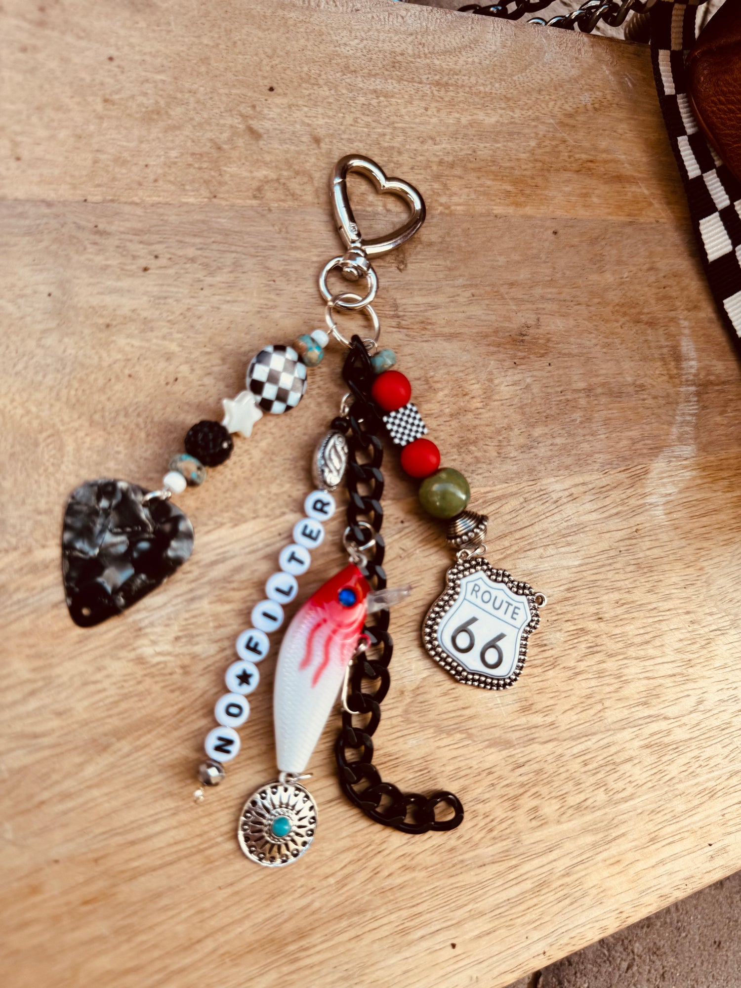 Authentic poker chip, fishing lure,ammo casings, guitar picks all hand beaded.