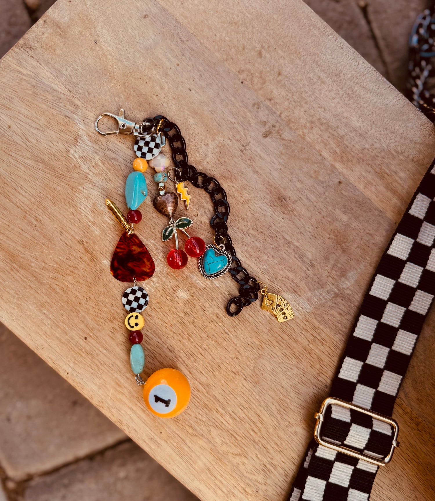 Authentic poker chip, fishing lure,ammo casings, guitar picks all hand beaded.