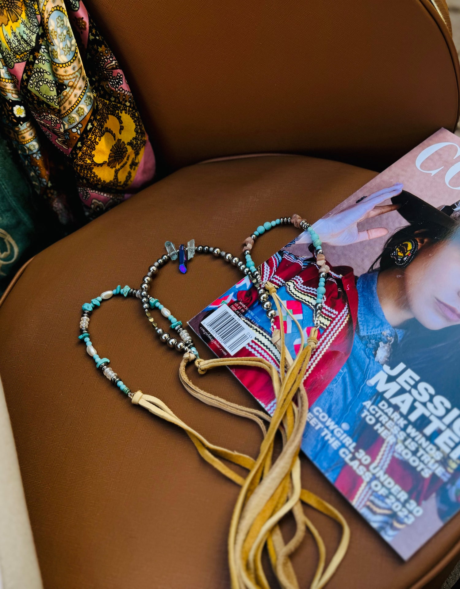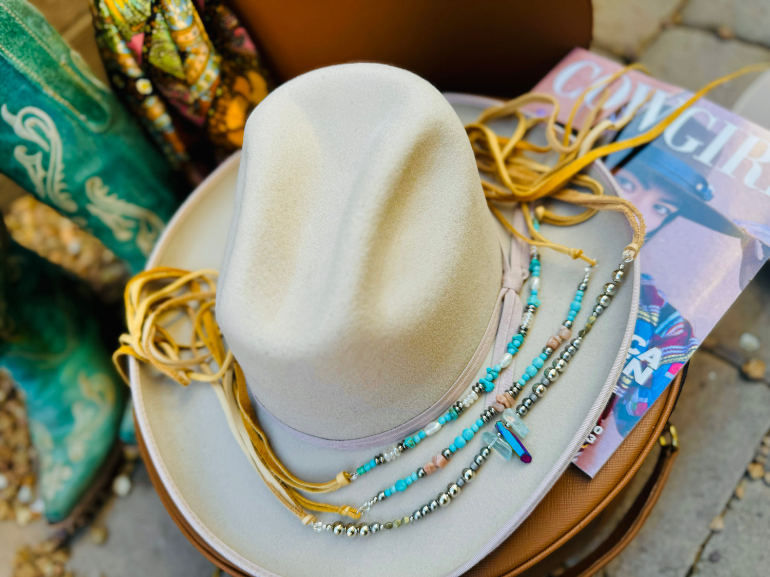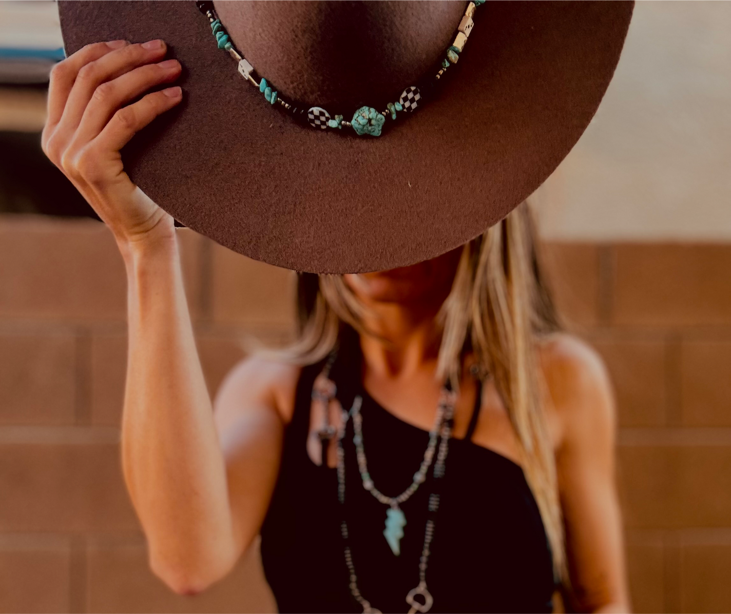 Genuine Handmade Locally sourced Elk hide Hat bands. Beaded and designed by CM Co.